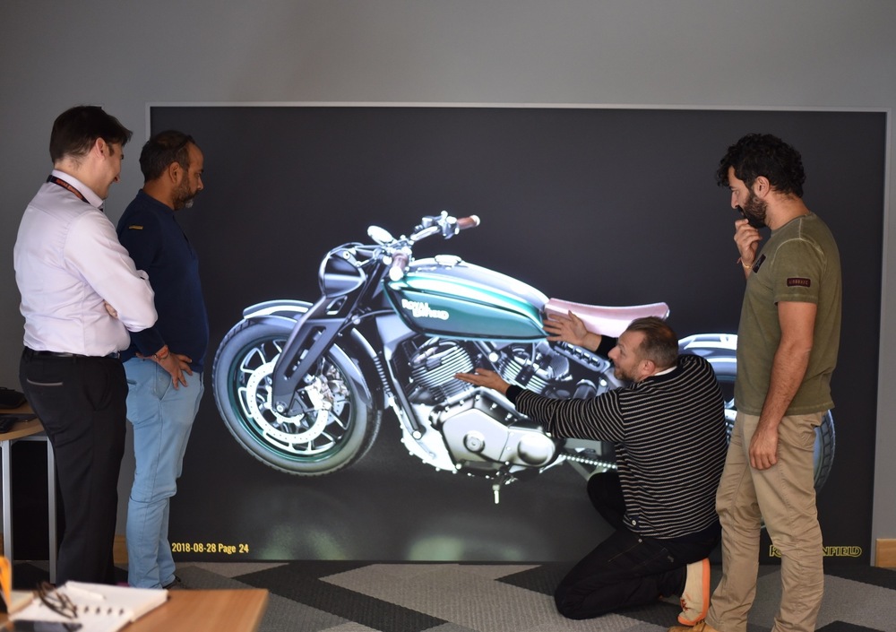 La KX originale è stata il punto di partenza per un concept che sfrutta la popolarità del segmento neoretrò, capace di unire la linea del KX - bassa, lunga, con forcella a parallelogramma - con un design attuale allo stato dell'arte, e materiali di lusso come bronzo e cuoio. Un lavoro in collaborazione fra la sede indiana e il Royal Enfield Technical Centre britannico, che ha partorito due modelli da cui poi è nata una sintesi unica: il concept che vedete.