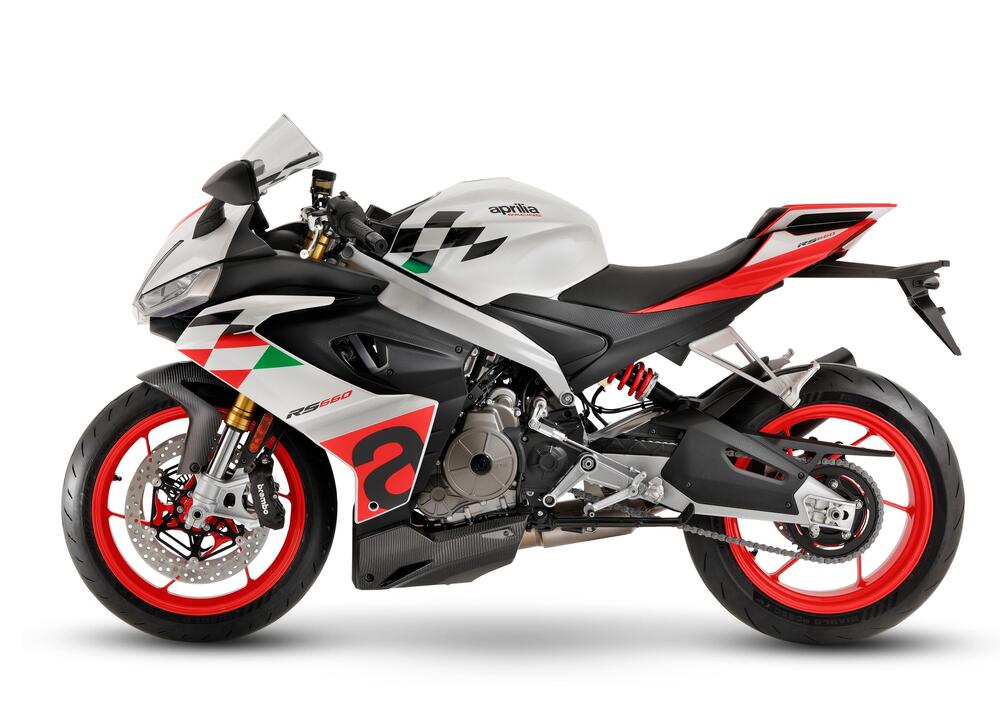 Confermando la nota base tecnica, telaio in alluminio e motore bicilindrico in linea a fasatura irregolare da 100 cavalli di potenza, grazie a una nuova componentistica di serie la RS 660 Extrema ferma l’ago della bilancia a 166 kg a secco.