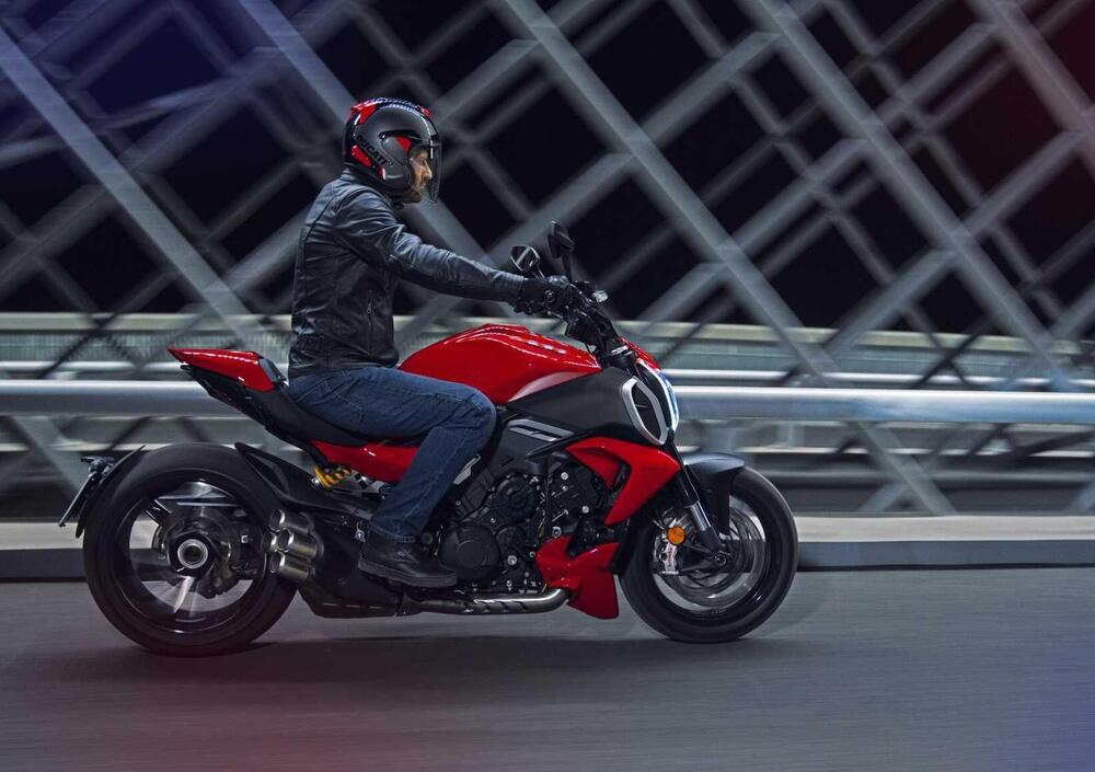 Il comfort è migliorato rispetto alla Diavel 1260 grazie alla sospensione posteriore con corsa aumentata di 15 mm e alla sella più ampia e meglio profilata.
