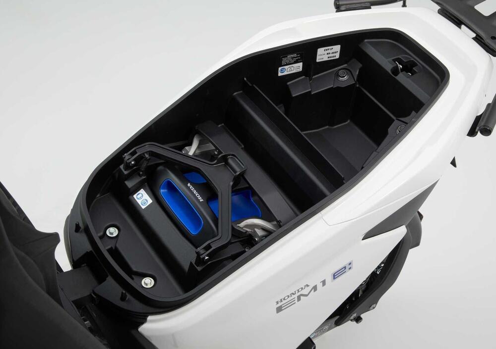 Il nuovo EM1 e: è alimentato dal sistema a batteria asportabile Honda Mobile Power Pack e: che è stato progettato con il focus su durata, affidabilità e qualità. Una ricarica completa offre un’autonomia di oltre 40 km e la batteria mantiene le prestazioni di durata per 4.000 cicli di ricarica.