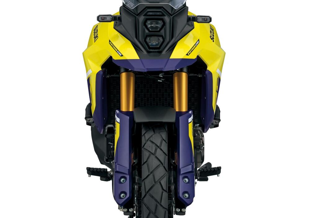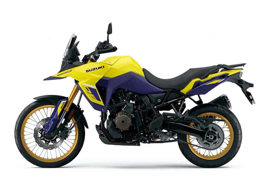 La nuova V-STROM 800DE è proposta in tre colorazioni: Giallo Petra, Grigio Berlino e Nero Dubai. Di serie ci sono i paramani, la griglia di protezione per il radiatore e un puntale di plastica rigida a protezione del motore.
