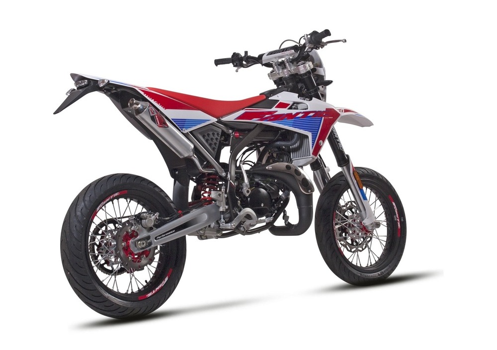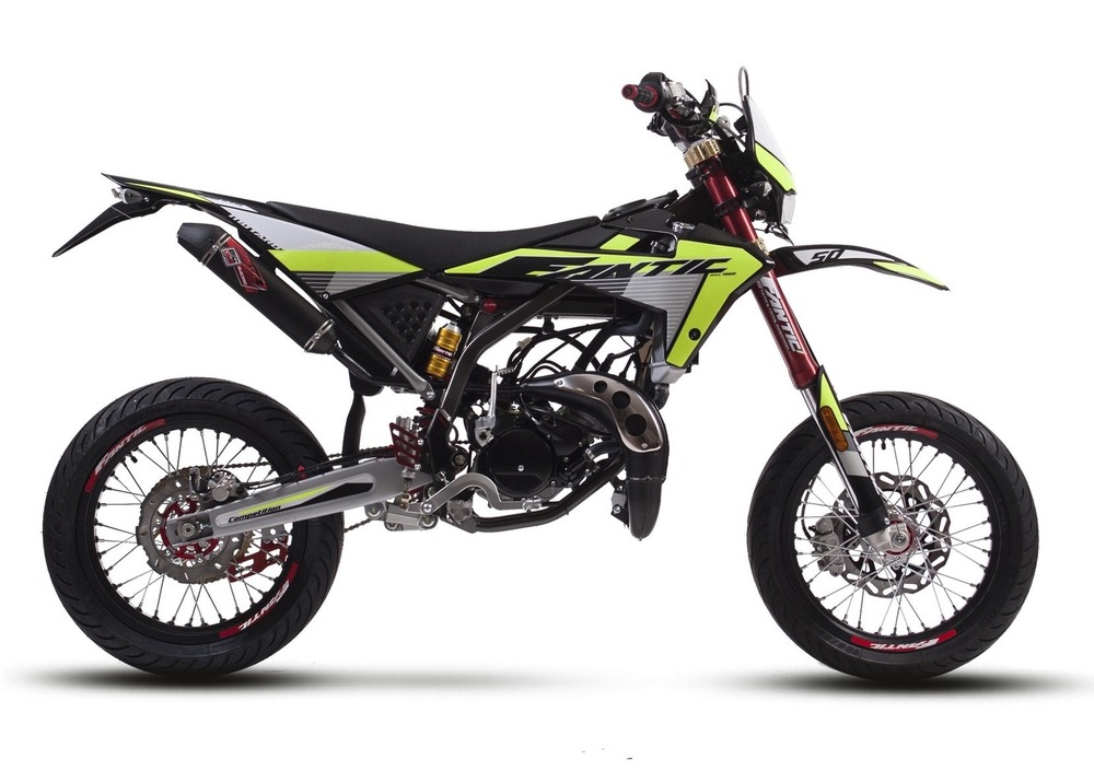 La grande novità 2020 della gamma enduro/motard di Fantic è l'allestimento Competition, che offre dettagli ancora più pregiati come le nuove pompe freno racing, le protezioni del freno posteriore, il manubrio anodizzato rosso e le piastre di sterzo ricavate dal pieno e anodizzate oro. Andando più nel dettaglio, la Enduro 125 Performance guadagna un nuovo sistema di scarico cromato by Arrow e la Competition 50 cc monterà un nuovo terminale all-black con fondello in carbon-look.