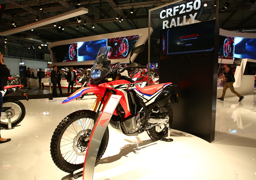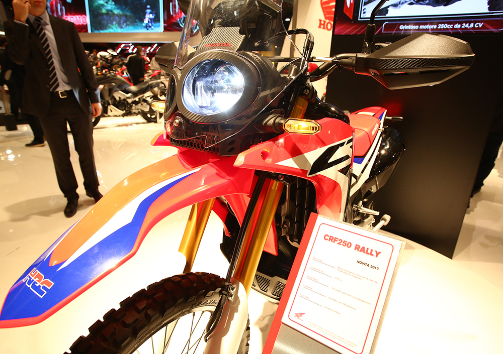 Honda tiene a battesimo a Eicma, il nostro Salone di Milano, la versione definitiva della Honda CRF 250 Rally. Presentata una prima volta come concept al Salone di Tokyo del 2015, e mostrata lo scorso mese di marzo all'Osaka Motor Show in veste di “prototype”, la nuova enduro 250 in abito rally è pronta a entrare in produzione ricalcando quasi fedelmente il prototipo visto a Osaka. Compresi i due fari asimmetrici a led e la strumentazione digitale montata alta e in posizione verticale come sulle moto da gara.