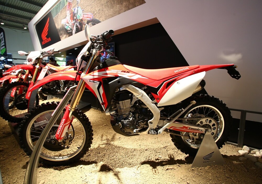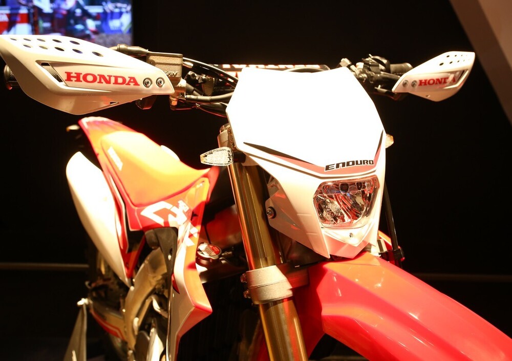 Honda Red Moto si presenta al Salone di Milano 2016 con una nuova motocross e una enduro, che sarà disponibile in 3 versioni. Partiamo con la monocilindrica senza fari: la moto è stata rivista completamente nel telaio e nel motore (sempre Unicam), più potente e con più coppia in basso. È stata anche rinnovata l’estetica con linee più affilate. Il serbatoio della benzina è in titanio e la forcella, marchiata Showa, è a molla, non più ad aria. Inoltre, c’è l’avviamento elettrico: è la prima volta che compare su una moto da cross giapponese (sarà disponibile come kit offerto di serie con la moto, compreso di batteria e relè, così sarà l’utente a scegliere se montarlo o no). Come potete vedere dalle foto, è stato mantenuto il doppio scarico. Sarà in vendita a fine dicembre.