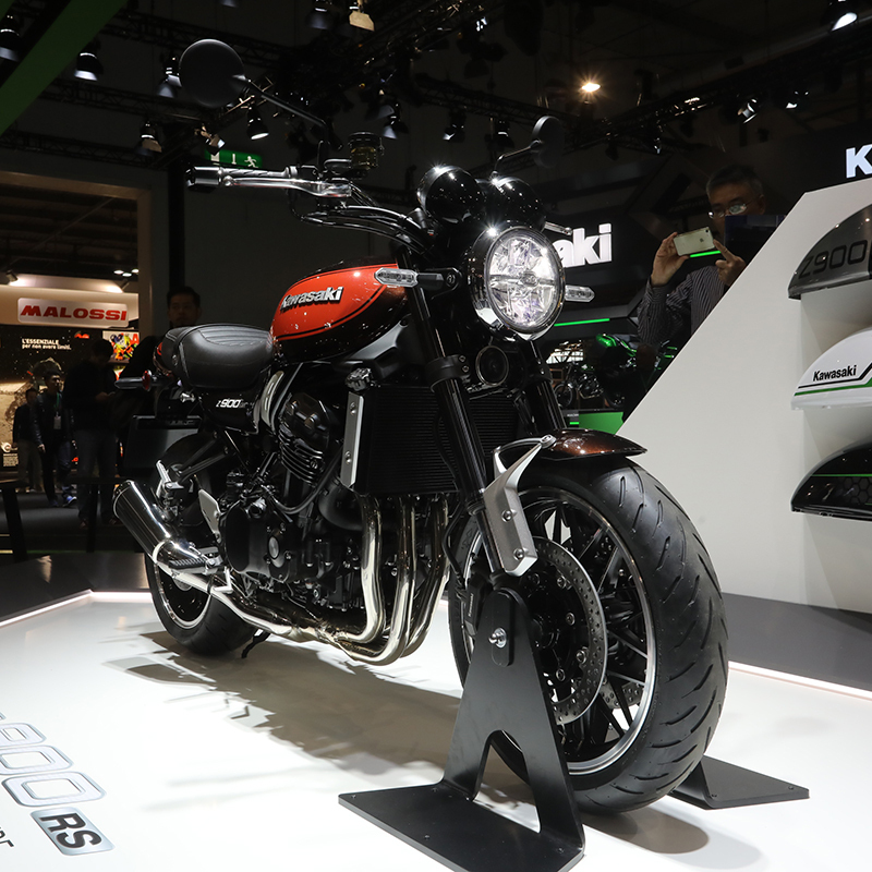 Partendo dalla base tecnica di motore e telaio della Z900, Kawasaki ha progettato e presentato a EICMA 2017 due belle sport-classic. La Z900RS vanta il serbatoio a goccia con colorazione bicolore, il codino ad unghia, la sella trapuntata, la strumentazione analogica e il faro a led rotondo (luce a led) con la cornice cromata, tutto per assomigliare alla Z1 900 degli anni '70 ma con prestazioni (111 cv a 8.500 giri) e sicurezza (controllo di trazione su due livelli) moderne. La Z900RS CAFE è invece la sorella cafè racer, che riprende la colorazione delle Kawasaki da endurance dei primi anni '80 e differisce dalla RS per pochi particolari: il cupolino, il manubrio a piega bassa, la sella, la finitura del silenziatore e la colorazione Vintage Lime Green. I prezzi f.c.: 11.790 per la RS e 12.290 euro per la CAFE.