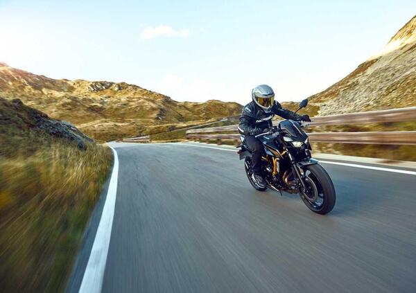 Il bicilindrico parallelo da 649 cm³ non cambia nella sostanza, ma ora viene abbinato di serie al controllo di trazione KTRC. L'erogazione privilegia la coppia ai medi regimi, scelta perfetta per l'uso quotidiano. La frizione assistita e antisaltellamento rende fluide le scalate, mentre il particolare convogliamento dell'aria calda del radiatore verso il basso migliora il comfort nel traffico. Tra gli accessori spunta il quick shifter per chi vuole cambiate più rapide.