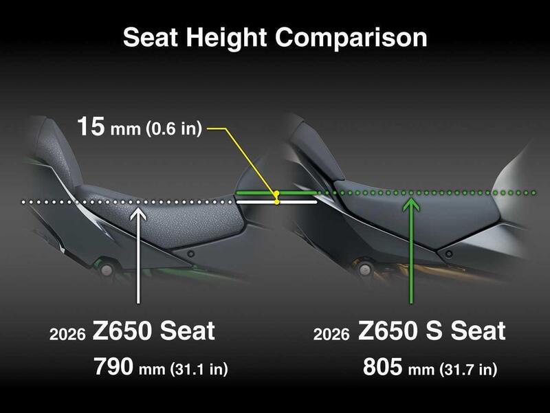Il design Sugomi caratteristico della famiglia si fa più deciso. Le sovrastrutture crescono in volume, il frontale si fa aggressivo con il gruppo ottico full LED che prevede doppio faro per gli anabbaglianti e un singolo proiettore per gli abbaglianti. Anche il posteriore passa al LED, frecce comprese. La cover radiatore in alluminio e la coda compatta completano un look che strizza l'occhio alle sorelle maggiori della famiglia Z, pur mantenendo quella raggiungibilità a terra che fa della 650 una moto davvero per tutti.