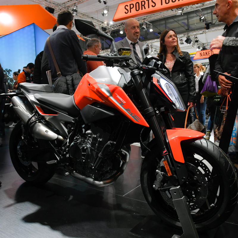 Dopo il concept presentato un anno fa, i tanti fan della casa austriaca la stavano aspettando, ed eccola a questa 75° edizione di EICMA. Il design non si discosta troppo da quello del prototipo e, grande protagonista, troviamo l’inedito propulsore bicilindrico da 799 cc, con una potenza di 105 CV.