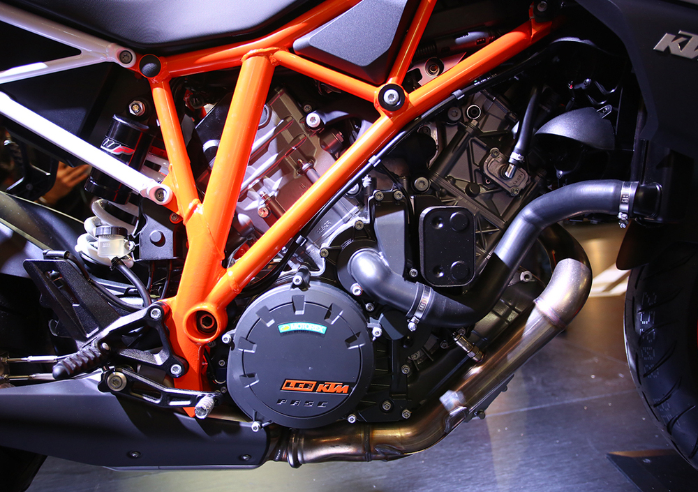 La Super Duke 1290 R ha sempre sopreso per i suoi numeri da urlo riguardanti il motore, ma evidentemente i tecnici di Mattighofen non erano ancora soddisfatti. Il nuovo modello della Bestia lascia a bocca aperta: il bicilindrico LC8 da 1.301 cc cresce ancora di potenza, toccando i 177 CV (merito delle valvole di aspirazione in titanio, più corte di 10 mm, e del nuovo profilo della camera di combustione, che porta il rapporto di compressione a 13,6:1). L’altra vera sorpresa è che sotto i 5.000 giri/min, la nuova Super Duke 1290 R consuma meno e le emissioni sono ridotte del 10% (rientra nell’omologazione Euro 4).