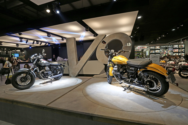 Lo stand Piaggio colpisce per il suo stile che non tramonta mai. Nonostante la presentazione della prima e-bike firmata dalla storica casa italiana, i visitatori sono attratti dalle “Vespe truccate anni ’50”, cantate qualche anno fa da Cesare Cremonini e che nel 2016 festeggeranno 70 anni di successi. Le giovani in sella sono vestite in pantaloncini corti e abiti colorati. Sembrano uscite da una pubblicità di altri tempi. La Vespa targata Emporio Armani è un inno alla classe italiana, mentre l'MP3 Sport 300 LT dimostra la sua agilità grazie a un meccanismo che lo fa piegare come una superbike. Nello stand Moto Guzzi è un continuo scattare foto. La parete degli accessori ricorda agli appassionati delle due ruote che siamo in pieno stile vintage café racer.