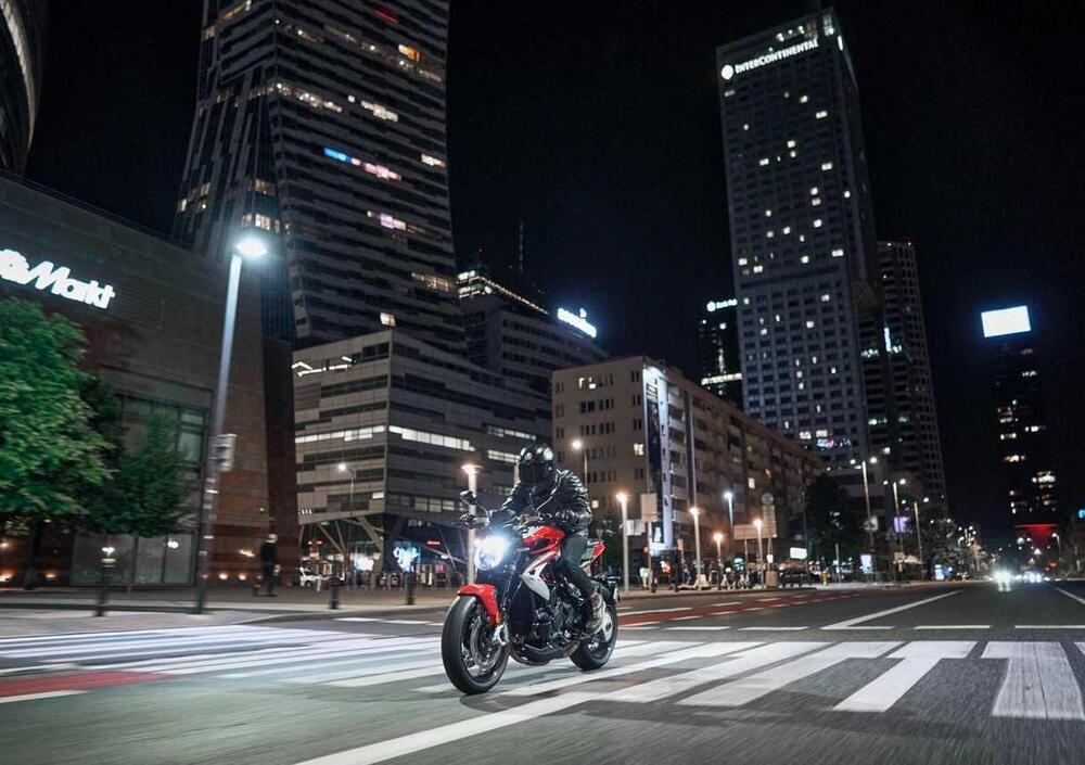 I modelli MV Agusta a quattro cilindri ricevono significativi aggiornamenti tecnici per il 2025. Una nuova centralina ottimizza le mappe motore migliorando la risposta al gas, mentre gli alberi a camme ridisegnati incrementano coppia e potenza. I miglioramenti sono evidenti a tutti i regimi: +10 Nm e +6 CV a 3500 giri/min, +20 Nm e +15 CV a 5500 giri/min, +11 Nm e +12 CV a 8000 giri/min, +10 Nm e +12 CV a 9500 giri/min. Il rapporto di trasmissione finale è stato accorciato, passando da 15-41 a 15-44.