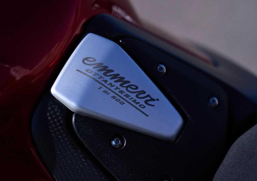 Da sempre la Brutale 1000 combina la grande potenza del mille emmevì con un'ergonomia meno estrema che la rende usabile non solo quando si ha il coltello tra i denti. Nella veste Ottantesimo mantiene la sua estetica inconfondibile ma la abbina ad una nuova livrea oltre che agli aggiornamenti meccanici descritti poc'anzi. Rosso Ago, Argento Ago e l’Oro presente nel logo Heritage sono i colori che la identificano.