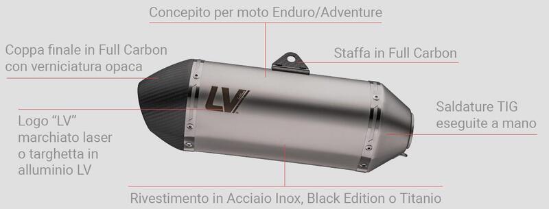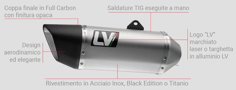 Il silenziatore LV-14 incorpora materiali fonoassorbenti ad alta resistenza termica, assemblati artigianalmente per offrire il classico sound LeoVince. Le saldature TIG, eseguite a mano da tecnici specializzati, garantiscono resistenza e affidabilità.