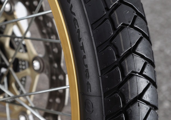 Il nuovo disegno sottolinea la maggiore propensione all’uso su sterrato, e la marcatura M+S lo sottolinea, anche se miglioramenti ci sono stati sia in termini di maneggevolezza e tenuta sul bagnato. Quest’ultimo risultato è stato raggiunto anche grazie all’utilizzo di mescole ricche di silice, oltre che dall’adozione di mescole diversificate sia per l’anteriore che per il posteriore, entrambi caratterizzati dalla tecnologia Dual Compound 2CT, che prevede mescole differenti per le spalle rispetto a quella adottata per la fascia centrale del pneumatico (con un rapporto 20/60/20).