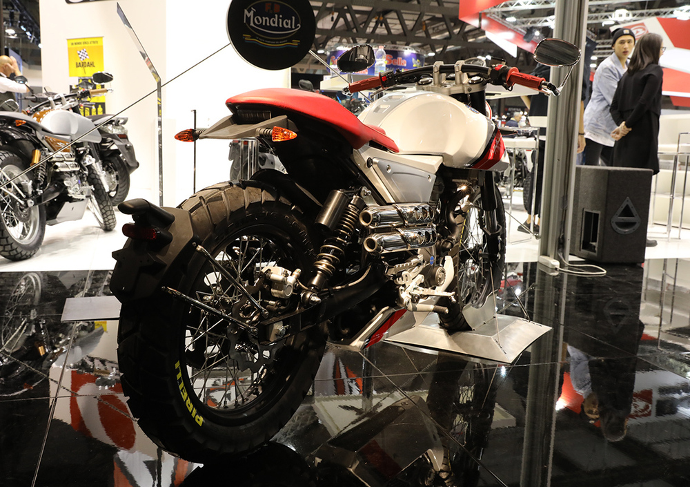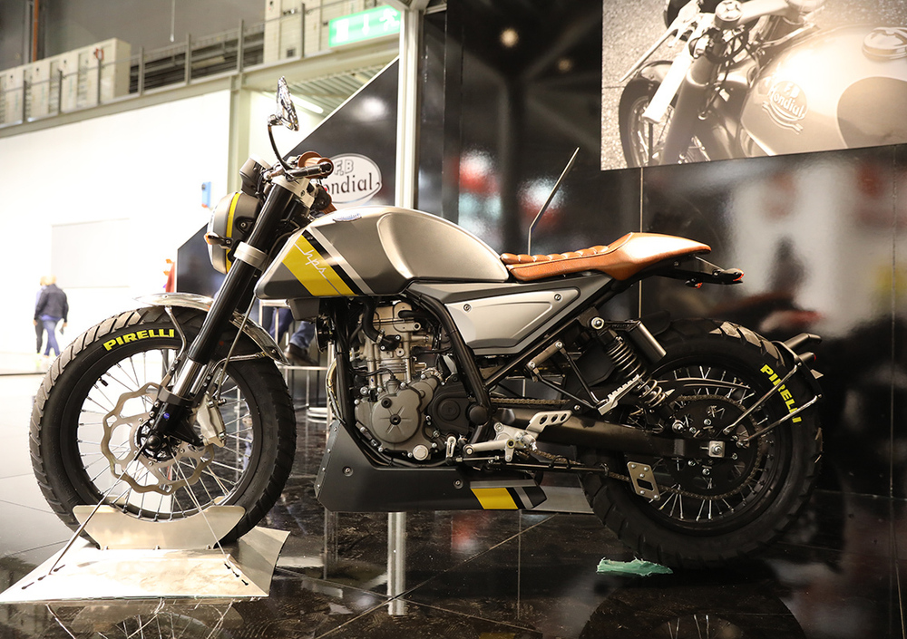 L’estetica della HPS 125 mixa lo stile retrò con quello moderno. All’anteriore è stata montata una forcella a steli rovesciati con pinza radiale, mentre al posteriore sono ben in vista i due monoammortizzatori. Il piccolo motore monocilindrico 125 cc DOHC, dotato di iniezione elettronica e raffreddamento a liquido, è affiancato da un aggressivo doppio silenziatore che termina all’altezza delle gambe del guidatore. Il codino con linee da flat track ingloba la sella del passeggero. Questa soluzione, insieme al porta targa ancorato al forcellone, rende più compatta e accattivante la “Hipster”. Il look scrambleristico si fonde anche con quello da cafè race, con un faro anteriore tondo, i semimanubri e gli specchietti attaccati a lato del manubrio. La Mondial HPS 125 è già disponibile per l’acquisto, due i colori: un grigio più vintage con sella marrone oppure un bianco più sportivo con sella rossa.