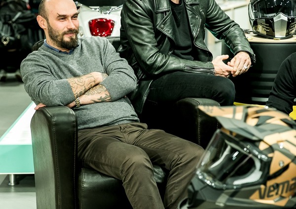 Nicolai Lilin (scrittore e tatuatore), Eros Galbiati (attore), Ernesto D’Argenio (attore), Paolo Casiraghi (comico e motociclista), Vanni Oddera (pilota di freestyle e fondatore della Mototerapia) e Matteo Adreani di The Reunion Cafè: tutti al talk di apertura della Moto.it Lounge: un’ora e 20 minuti tra sorrisi, esperienze di vita in moto e racconti di che cosa le due ruote possono fare, oltre ad emozionarci su strada.