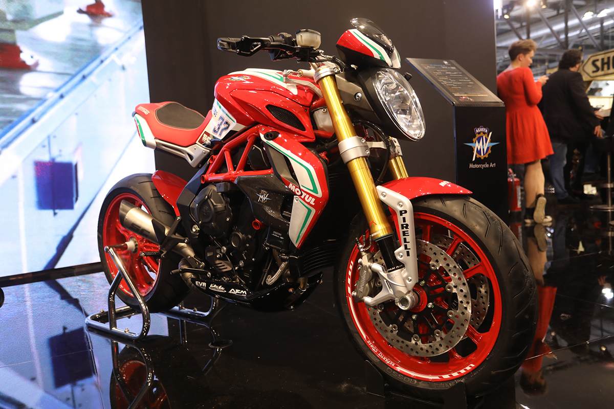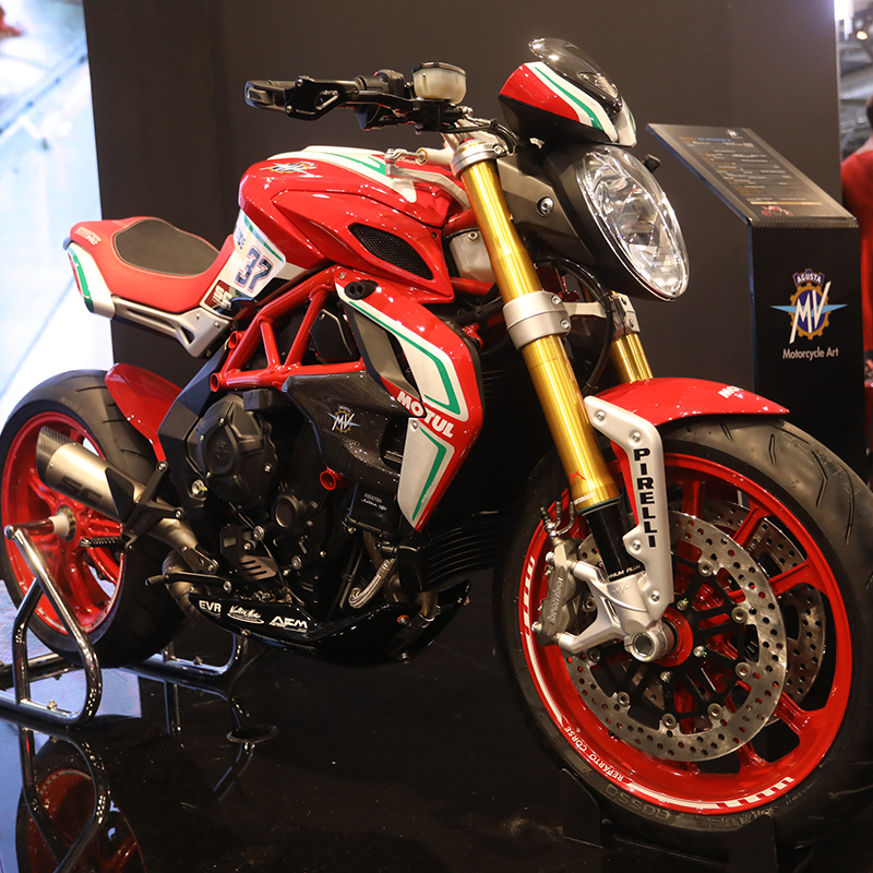MV Agusta si presenta al salone con le versioni 2018 delle Dragster, F3 e della F4 Reparto Corsa, ma anche con l'inedita Brutale 800RR realizzata in collaborazione con Pirelli.