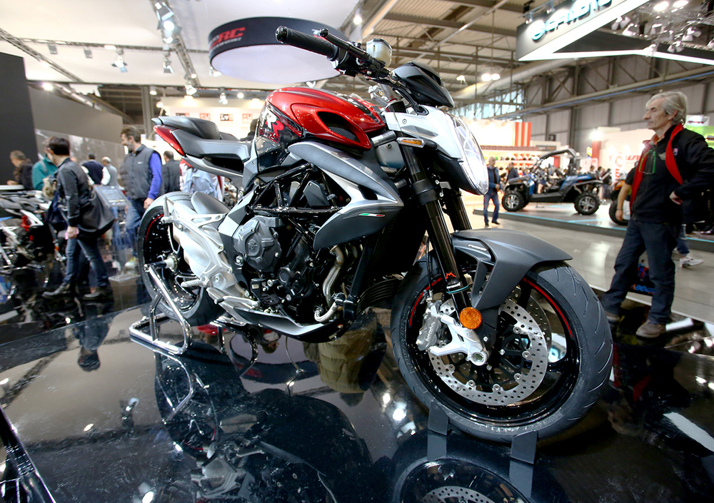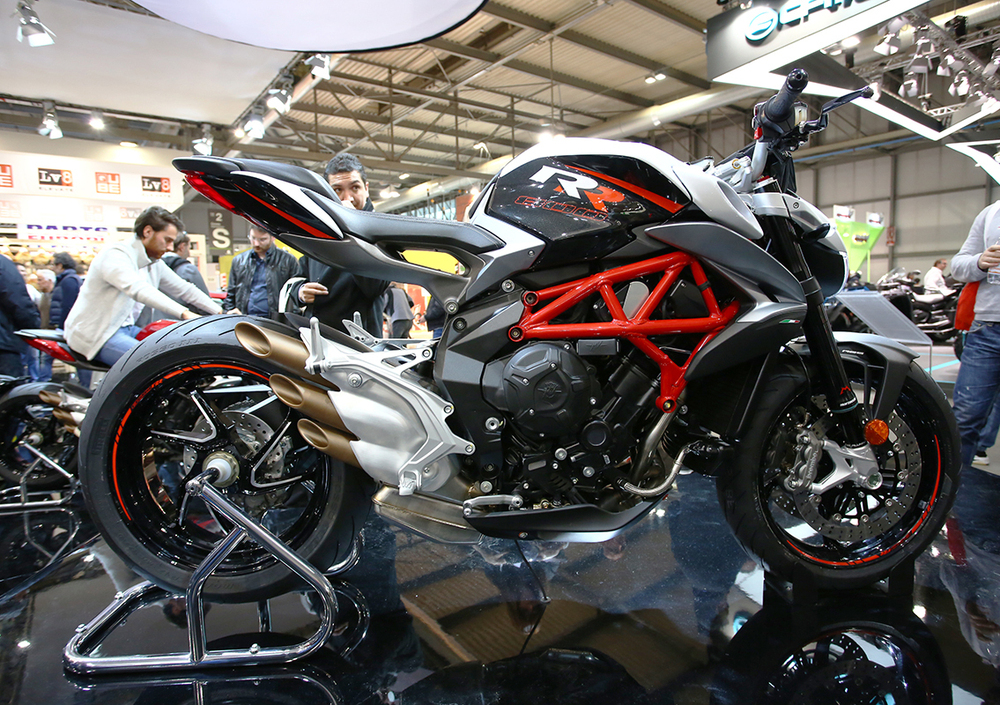 MV Agusta presenta ad EICMA 2016 la Brutale 800 RR, top di gamma tra le naked tre cilindri che escono dallo stabilimento di Schiranna. Ad un anno esatto dalla presentazione della Brutale 800, questa versione “RR” si arricchisce ulteriormente dal punto di vista sia dell’allestimento sia delle prestazioni. Il tre cilindri è stato rivisto in alcuni particolari, per permetterne l’omologazione Euro 4, mantenendone le prestazioni elevatissime del precedente modello.