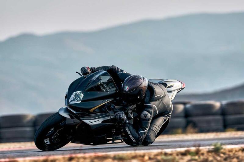 Il comando gas con corsa negativa rende il controllo più semplice, immediato ed efficace, annulla l’effetto on-off e permette di disinserire facilmente il Cruise Control di serie. La dashboard è costituita da un pannello TFT a colori da 5,5” col quale dialogare attraverso l’app MV Ride, che tra le altre funzioni permette anche di registrare e condividere i propri itinerari, personalizzare la configurazione della moto direttamente dallo smartphone e attivare la navigazione turn by turn. La dotazione elettronica è completata dall’ABS con due modalità di funzionamento (Sport e Race) e funzione cornering, che offre il massimo della sicurezza e della funzionalità anche in curva. In funzione Sport l’ABS è attivo su anteriore e posteriore, il cornering è attivo come anche la funzione RLM (Rear Wheel Lift-Up Mitigation). In funzione Race l’ABS è attivo sull’anteriore, la funzione cornering disattivata e la funzione RLM tarata per essere meno invasiva. L’ABS è totalmente disinseribile solamente quando il veicolo viene equipaggiato con la mappatura dedicata per lo scarico Akrapovic ed è utilizzabile solamente su pista.