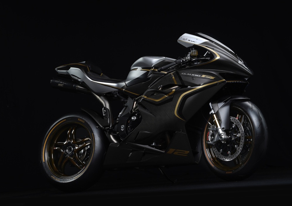 A livello ciclistico va notato l’arrivo delle pinze Brembo Stylema, con dischi T-Drive da 320mm; la forcella è una Öhlins NIX30 con steli da 43mm mentre il monoammortizzatore è un TTX36. Realizzate specificamente per la Claudio anche le gomme Pirelli Diablo Supercorsa, con decorazione dorata sulla spalla per fare pendantcon la meravigliosa livrea nero/oro della moto.