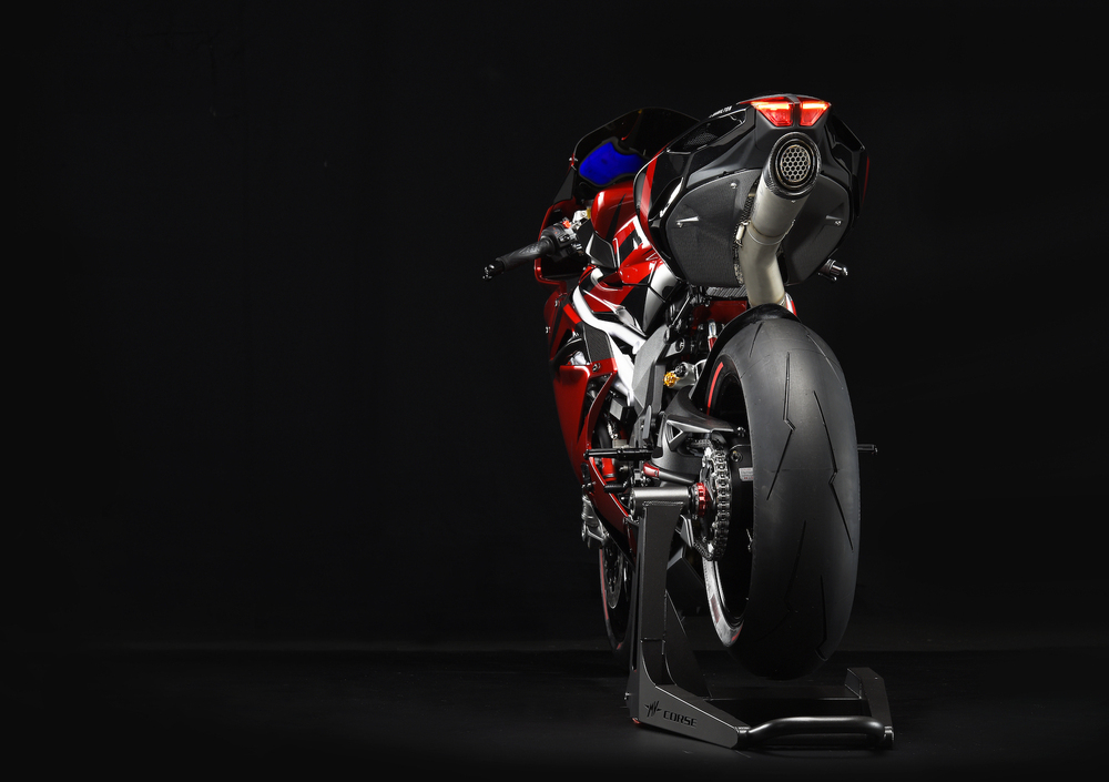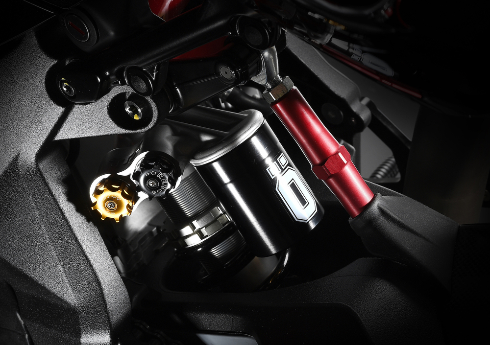 Il quadricilindrico a valvole radiali in questa versione raggiunge la potenza massima di 205 CV, che diventano 212 adottando il kit racing consegnato di serie insieme alla moto, composto di scarico in titanio SC Project e centralina dedicata, per un guadagno di 7 CV. La ciclistica, che naturalmente si affida allo schema consolidato per il telaio con il consueto misto traliccio in acciaio/piastre in alluminio, sceglie il top per quanto riguarda il comparto sospensioni, con una forcella rovesciata Öhlins tipo NIX 30 con trattamento superficiale TiN, e monoammortizzatore Öhlins TTX con serbatoietto separato a schema piggyback, entrambi anodizzati neri, come sulla Ducati Superleggera.