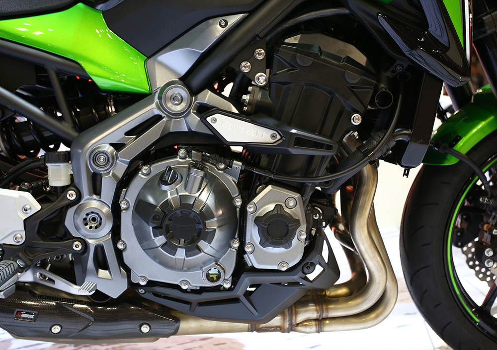 Il motore ha cilindrata 948 cc e, come sottolineano le sue misure di alesaggio e corsa (73,4x56 mm), deriva dal 1.043 cc della Z1000. La sua potenza di 125 cv si pone così a metà strada fra i 113 cv della Z800 e i 142 della Z1000.