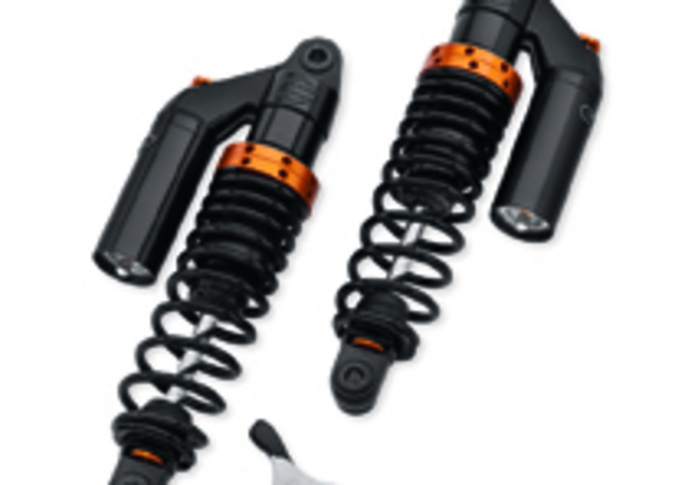 Anche i nuovi ammortizzatori con serbatoio separato Screamin’ Eagle sono completamente regolabili: nel precarico, in estensione e in compressione. I punti dove agire sulle regolazioni sono anodizzati in arancione per essere facilmente individuabili e forniscono un look unico.