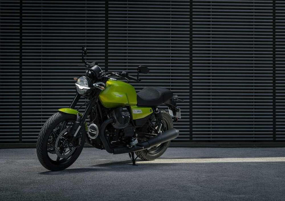 Sul fronte sospensioni, all’anteriore V7 Stone e V7 Special mantengono la tradizionale forcella telescopica con steli da 40 millimetri, mentre sulla Sport debutta una nuova forcella a steli rovesciati con steli da 41, regolabile nel precarico.