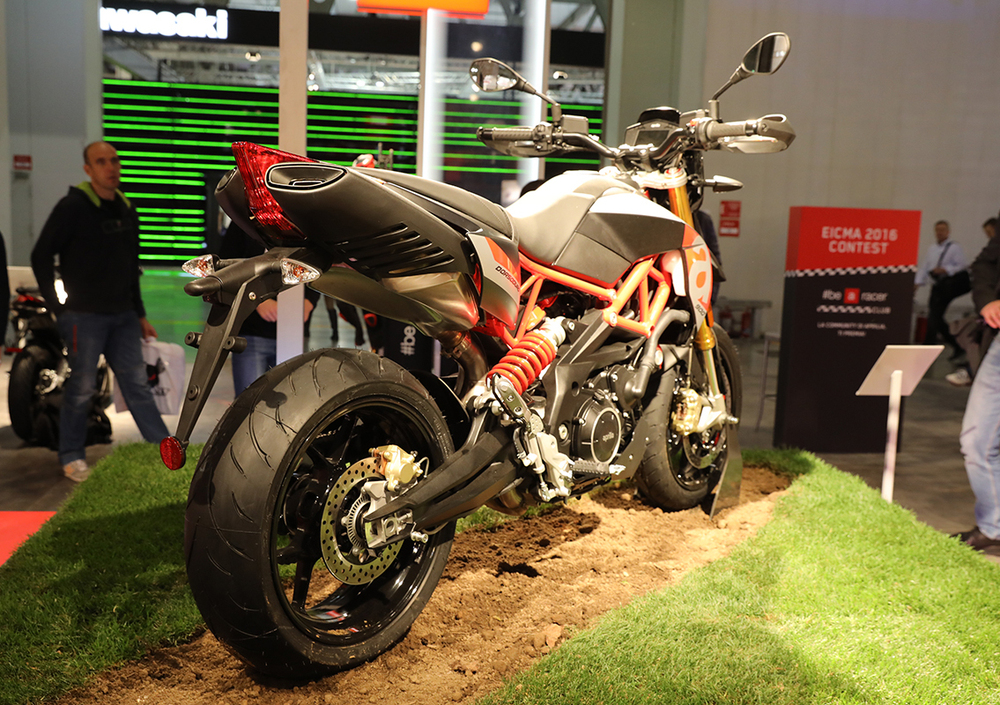 Oltre alla nuova forcella, inedita è anche la coppia di cerchi a tre razze sdoppiate, oltre 2 kg più leggeri di quelli che equipaggiavano Dorsoduro 750. Riducendo l’effetto giroscopico aumenta la maneggevolezza e l’accelerazione, oltre ad avere benefici sul comportamento delle sospensioni per via della riduzione delle masse non sospese.