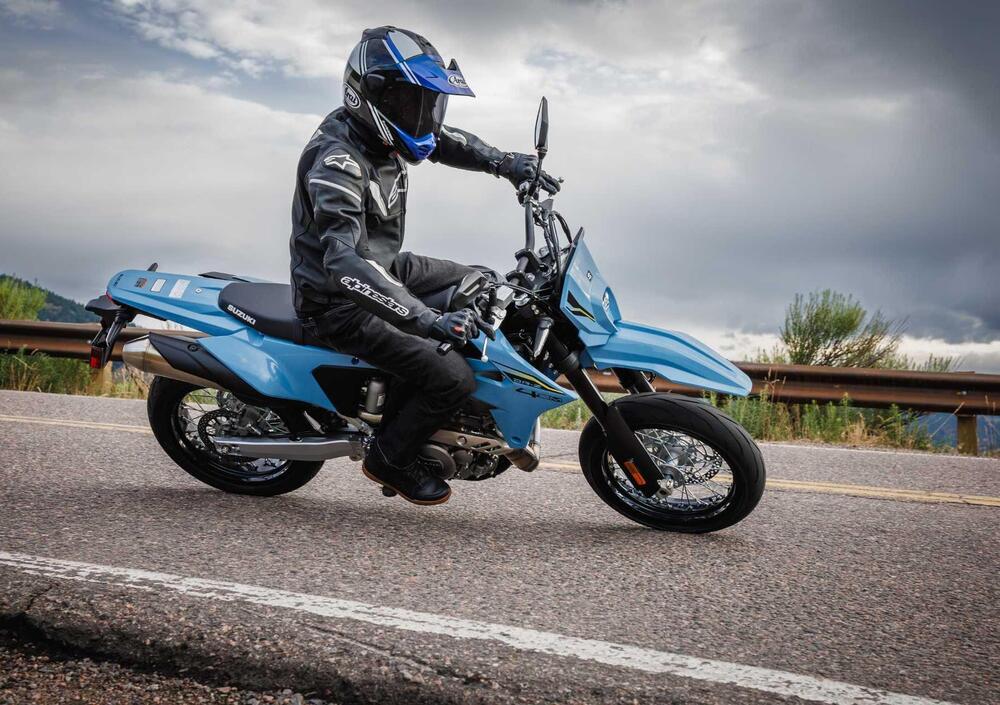 Dal punto di vista estetico, il giallo Suzuki, tradizionalmente associato al fuoristrada, domina i colori disponibili. La versione SM è invece più sobria, con grafiche grigie e nere che enfatizzano l’anima sportiva della moto. Tra gli accessori disponibili figurano il portapacchi posteriore, i fari ausiliari e la presa da 12V per ricaricare dispositivi elettronici, rendendo la moto un mezzo versatile anche per i lunghi viaggi e le esplorazioni.