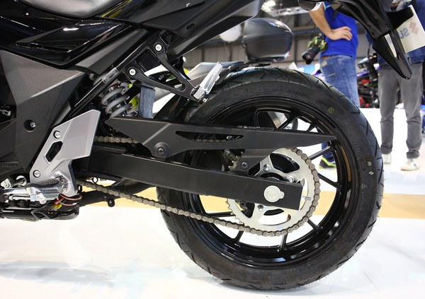 Passando alla ciclistica, la sportiva 250 marchiata Suzuki monta sospensioni KYB, sia all’anteriore che al posteriore. Saranno disponibili due versioni: una base e l’altra con l’ABS.