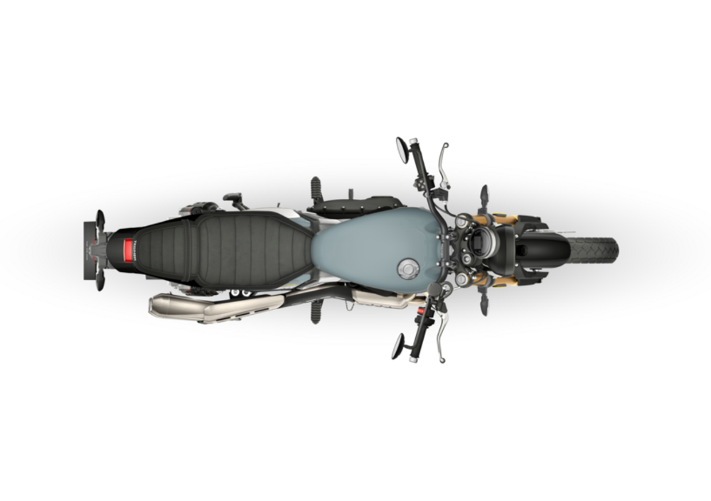 Il motore da 900cc eroga 65 CV a 7.250 giri/min e 80 Nm di coppia a 3.250 giri/min, con il caratteristico albero motore a 270° che conferisce quel sound distintivo. Lo scarico 2 in 1 in acciaio inox spazzolato è stato ripensato per integrarsi meglio con le nuove linee della moto.