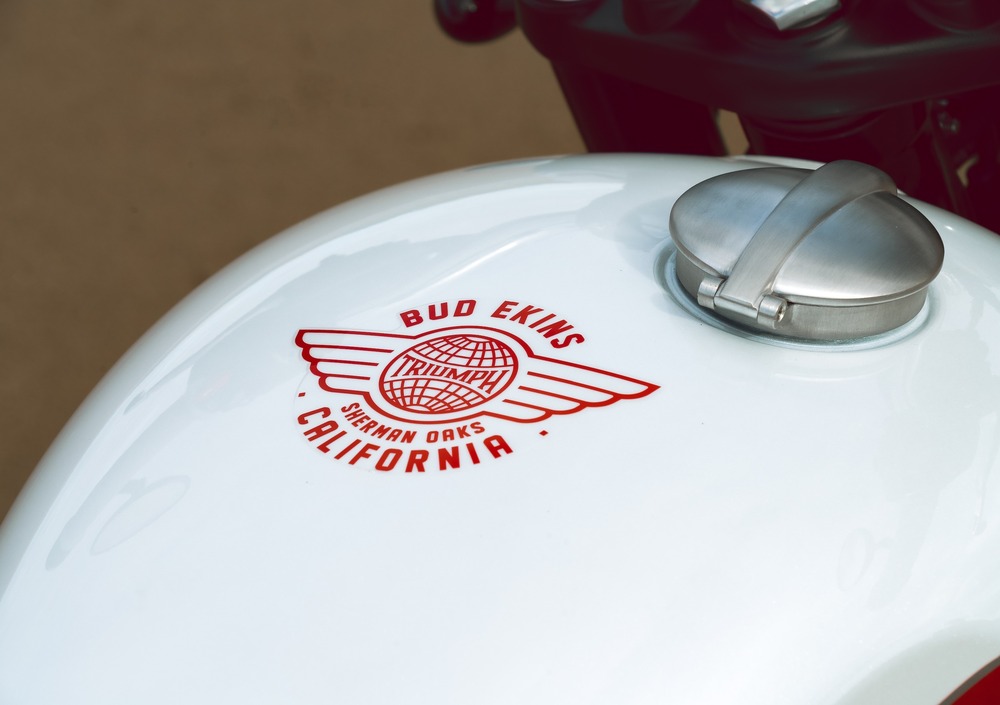 Triumph presenta a EICMA 2019 due edizioni speciali della Bonneville T120 e T100. Due modelli per celebrare Bud Ekins, stuntman professionista di Hollywood e icona degli anni '60, noto per aver fatto il salto più famoso della storia del cinema nel film “La grande fuga”. I contenuti tecnici e tecnologici non cambiamo rispetto ai modelli di serie, ma l'estetica è profondamente caratterizzata grazie a una colorazione di ispirazione californiana, dettagli e finiture speciali. La verniciatura bicolore presenta linee serbatoio dipinte a mano e lo storico logo del marchio inglese e della California ‘flying globe’ sul serbatoio. Sui fianchetti invece risalta quello di ‘Bud Ekins’. Le Bonneville T120 e T100 Bud Ekins torna uno stile senza tempo ma con tecnologia moderna.