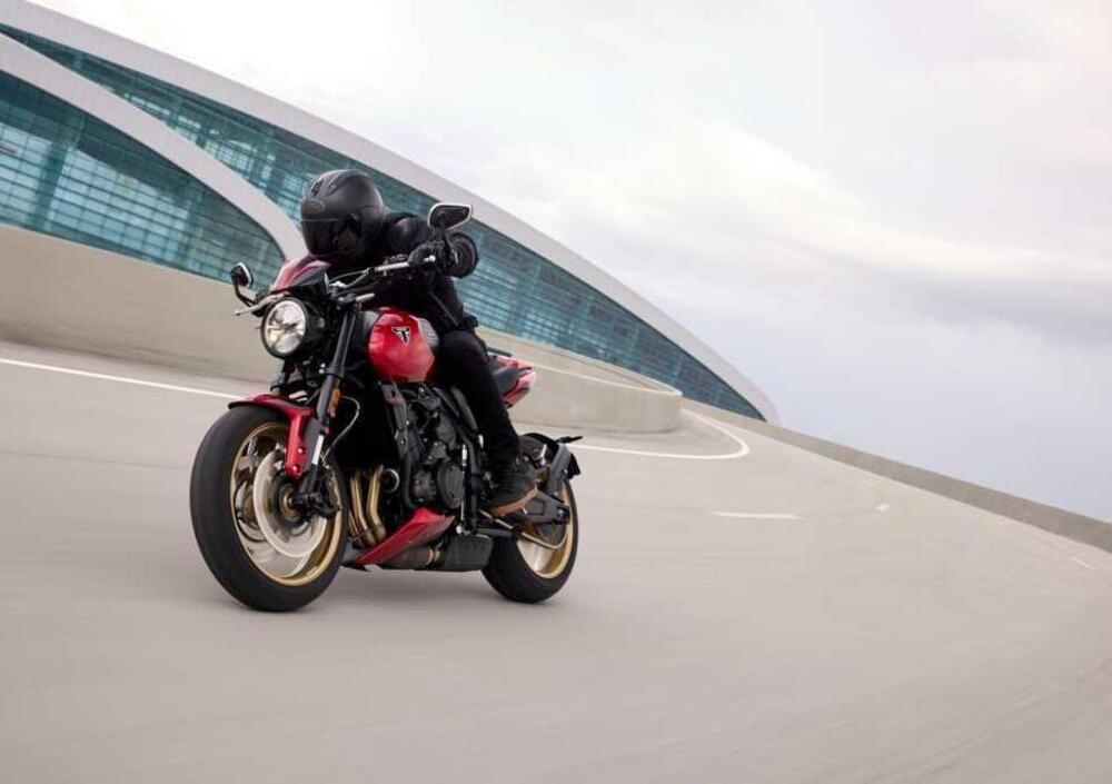 La dotazione tecnologica della Trident 800 comprende tre riding mode (Road, Sport e Rain) che modificano risposta del gas e intervento del controllo di trazione. Il sistema Optimised Cornering ABS e Traction Control lavora con sensori che rilevano l'angolo di piega in tempo reale, modulando frenata ed erogazione per garantire sicurezza anche in curva.