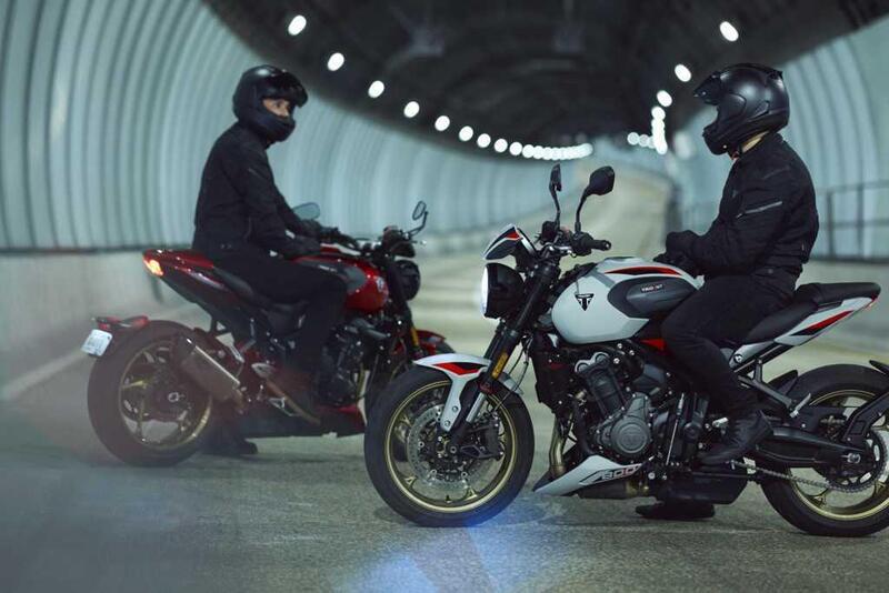 Il propulsore è un 798cc a tre cilindri sviluppato ex novo, non una semplice evoluzione dei motori già in gamma. Triumph ha lavorato su ogni componente interno: albero a gomiti twist-forged, alberi a camme dedicati, bielle forgiate e pistoni ad alto rapporto di compressione. La scelta dei tre corpi farfallati garantisce risposta istantanea all'acceleratore, mentre l'airbox ridisegnato amplifica il sound tipico del tre cilindri britannico.