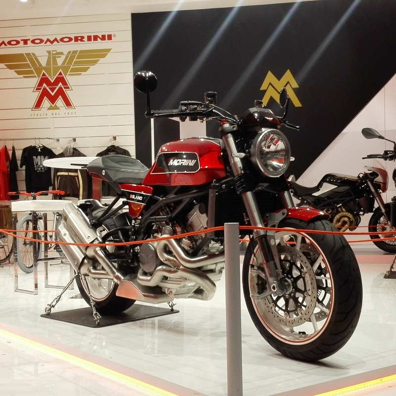 Scoprite le moto bianco-blu esposte allo stand della Casa di Pesaro in occasione del Salone di Milano 2017.