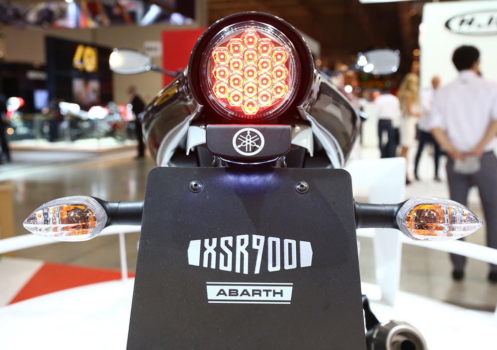 XSR900 Abarth è equipaggiata con uno scarico in titanio XSR900 Akrapovič, dotato di doppia marmitta slip-on in titanio. Il logo Abarth, presente su serbatoio, parafango anteriore e codone in carbonio, arricchisce la livrea grigio/rossa dedicata alla XSR900 Abarth.