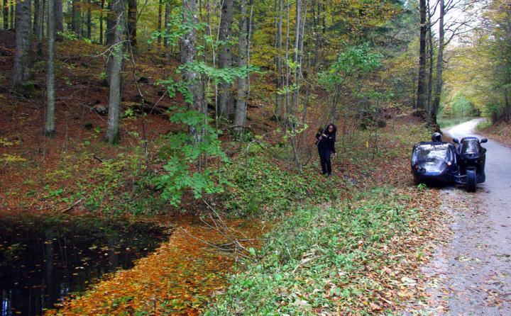 Verso la fine di Ottobre, in una giornata purtroppo piovigginosa che non riuscì comunque a trattenerci in casa, partimmo di mattina presto, per realizzare un percorso davvero meraviglioso ... quello che,in Slovenia, porta da Ajdovscina a Lokve, su stradine serpeggianti e autenticamente naturali,dove,ad un certo punto, comincia lo sterrato ancora praticabile, ma che, ad un tratto, s'interrompe...laddove la foresta riempie ancora ed interamente la vista e non ci sono strade... !! ( ...però,le stanno costruendo...!!!) ...
