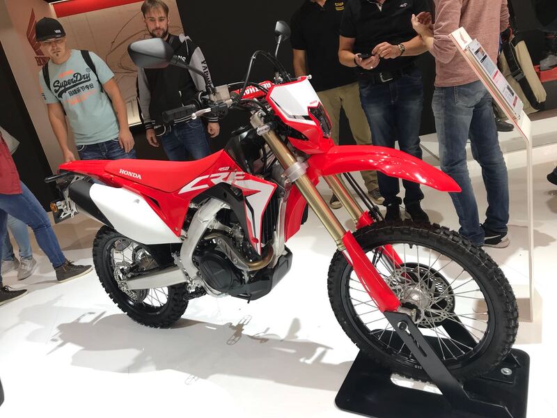Honda presenta a Colonia la CRF 450L per l'enduro non agonistico (qui la nostra descrizione video), ma che deriva dal modello specialistico CRF 450R. Ha motore con distribuzione Unicam, telaio di alluminio e avviamento elettrico. In Europa arriva con la potenza di 25 cavalli e 131 kg di peso. In Italia non sarà importata, ma ci penserà RedMoto a Eicma a proporre qualcosa di adatto ai nostri gusti ed esigenze.