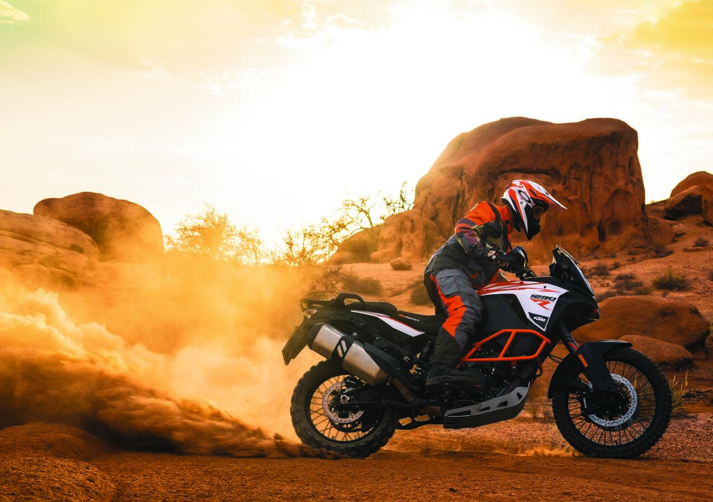 Il propulsore da 1.301 cc eroga sempre una potenza di 160 CV, numeri impegnativi se si pensa ad un possibile utilizzo su sterrato. Ma per fortuna, l’elettronica della Super Adventure R non ha niente da invidiare alle altre top di gamma in arancione: controllo di stabilità (MSC), 4 mappe motore, controllo di trazione (MTC), cruise control, controllo di pressione delle gomme (TPMS), cornering ABS, luci a LED con funzione cornering e la possibiltà di montare il Travel Pack (Hill Hold Control HHC, Motor Slip Regulation MSR, cambio elettronico e sistema KTM my Ride).