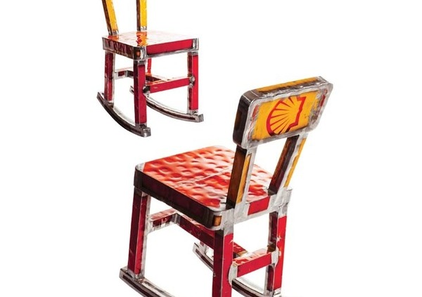 Nella fattispecie, le lampade che vedete qui sono costituite da diversi barili, tagliati in sezioni, rimodellati e trasformati in un lampadario a sospensione a 6 facce. Sono poi disponibili sedie, alcune con intelaiatura inscatolata in acciaio, sedie a dondolo e sedie con aspetto vintage anni 60; sono inoltre disponibili anche tavoli con diverse fattezze,