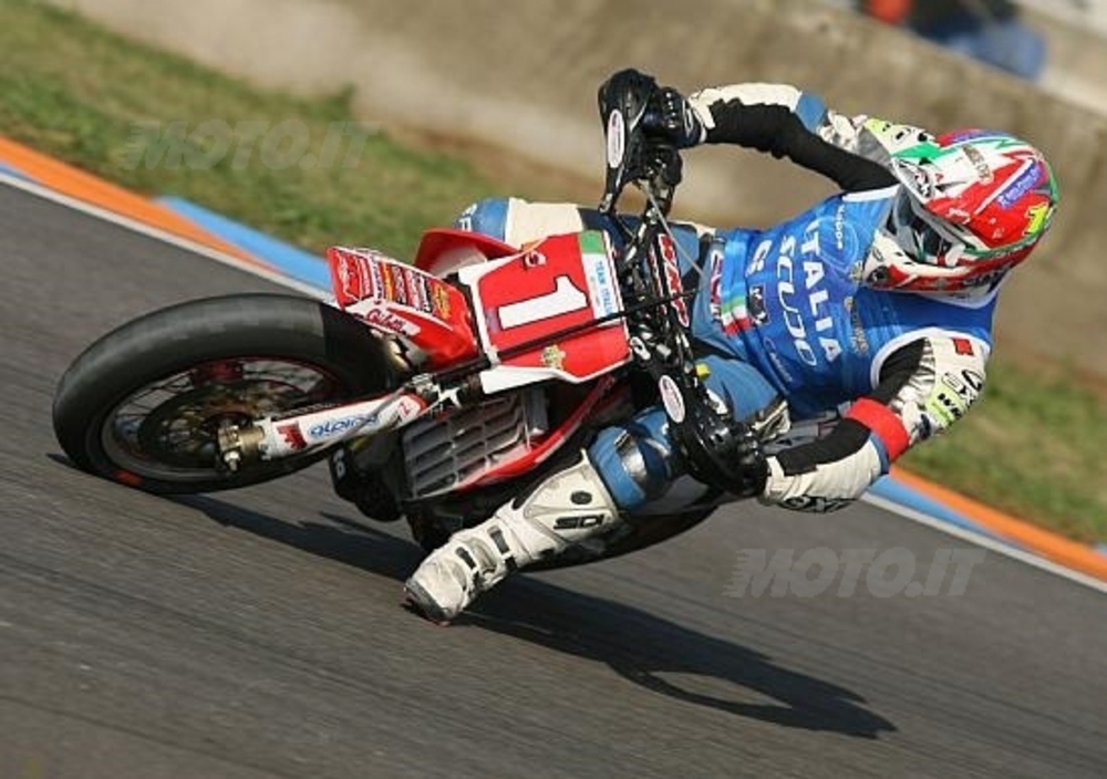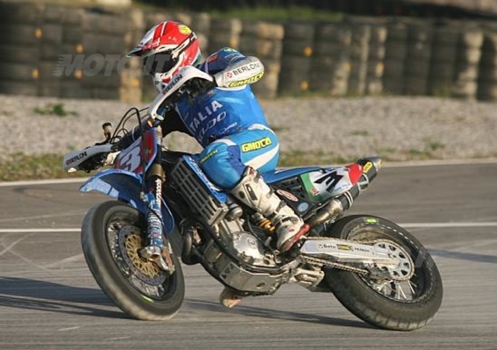 Ottimo esordio quello della nazionale italiana Maglia Azzurra al Supermoto delle Nazioni sul cicuito Daniel Bonara di Castrezzato in Franciacorta. Il trio di piloti composto da Gozzini, Pignotti, Beltrami, guidati dal c.t. Andrea Bartolini, ha ottenuto la pole position nelle manche di qualifica per la gara di domani. Gli azzurri hanno saputo approfittare al meglio di alcuni errori in cui sono incappati i piloti dei team più competitivi, vedi ad esempio la Francia.