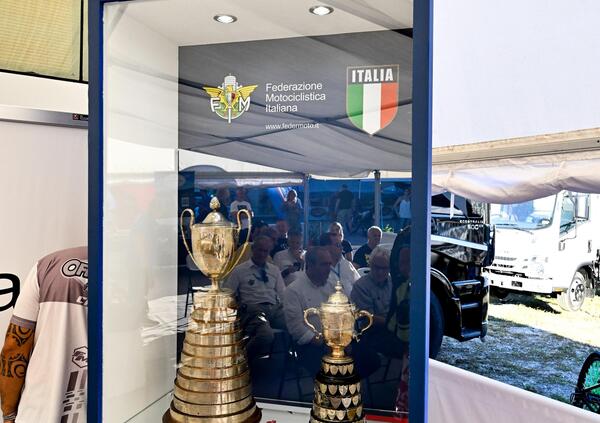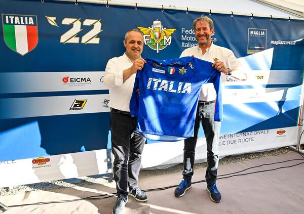 Il GP d’Italia del Mondiale Enduro a Carpineti è stato anche il palcoscenico per la presentazione della Maglia Azzurra FMI 2022. A svelarla è stato il Presidente FMI Giovanni Copioli insieme al Coordinatore del Comitato Enduro FMI Franco Gualdi, al Direttore Tecnico FMI Enduro Cristian Rossi, al Capo della segreteria politica della presidenza della Regione Emilia Romagna, Giammaria Manghi. Sul palco ovviamente c'erano anche i piloti che hanno conquistato la Sei Giorni nel Trofeo e tra gli Junior.