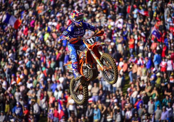 L’Italia non è stata fortunata nel sabato del Motocross delle Nazioni, ma tutti i piloti hanno dimostrato velocità e grinta. I giovani rappresentanti della Maglia Azzurra sono scesi in pista nelle Prove Libere del mattino prendendo confidenza con il tracciato e con i mezzi. Alberto Forato (Ktm) ha realizzato il 10° tempo della MXGP, Andrea Adamo (Ktm) il 6° nella MX2 e Andrea Bonacorsi (Yamaha) il 5° nella Open. A seguito del ballot di ieri, al via delle heat di qualifica l’Italia si è schierata per 25esima al cancelletto.