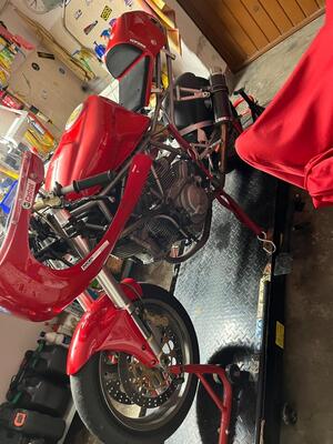 PER RAGGIUNTI LIMITI DI ETÀ VENDO DUCATI 750 SS I.E.DEL 2000 CON KM STRADALI 31805 CAFE RACE CONSEGNATA IN VERSIONE PRONTA PISTA IN PERFETTE CONDIZIONI GOMMATA PIRELLI SLICK PRATICAMENTE NUOVE E SOSPENSIONI RECENTEMENTE RIFATTE -CON 2 PIGNONI E ALZAMOTO COME DA FOTO MOTORE CV 65 VELOCITÀ MAX 207 KH- MAI GAREGGIATO ESCLUSIVAMENTE PROVE LIBERE-VIENE ACCOMPAGNATA INOLTRE -ECCETTO VECCHI PNEUMATICI E PROFILO GOMMA SU SERBATOIO-DA L’INTERA DOTAZIONE STRADALE IN OTTIME CONDIZIONIb CON I DOCUMENTI IN REGOLA IN QUESTA VERSIONE NON AVRÀ PROBLEMI A PASSARE LA REVISIONE ED È PURE ISCRITTA AL REGISTRO STORICO FMI.PASSAGGIO DI PROPRIETÀ NON INCLUSO NEL PREZZO.