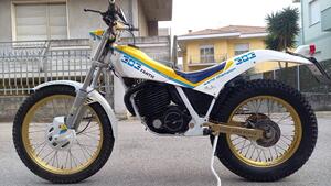 mondiale Trial ; ovviamente consegno il suo DELL ' ORTO PHBH 26 SD , cosi bello che se qualcuno dei lettori lo vedesse , mi chiederebbe qual ' è sta-to il motivo che mi ha motivato a montare il Miku-ni....! Lo sterzo originale ( anodizzato azzurro ) è stato sostituito con un DOMINO di eccellente qu-alità perchè presenta una impercettibile piega sul lato destro , in quanto la moto è caduta mentre era avviata , dal lato opposto del cavalletto : ma anch ' esso viene consegnato a testimonianza di quanto detto ! Come si evince dall ' ultima foto , la moto è regolarmente immatricolata con documenti pronti per il passaggio di proprietà ed è iscritta al regi-stro storico F.M.I. , possiede il suo libretto di uso-manutenzione , le due chiavi di bloccasterzo e qu-anto si vede nella foto . Non mi sembra il caso di mettermi ad elencare le solite cose , come ho det-to la moto è perfetta in tutto e chiunque , se vuole , la può acquistare , tuttavia sarei particolarmente contento se la acquistasse un collezionista che manca di questo pezzo . La richiesta indicata non è trattabile , per cui chi fosse eventualmente inte-ressato , viene , visiona la moto e decide se acqui-starla oppure no . Tuttavia posso dare la possibilità all ' eventuale acquirente di pagarsi il passaggio al P.R.A. ad un costo di 130 € anzichè 230 € in agen-zia . Cell. 3519910252 .