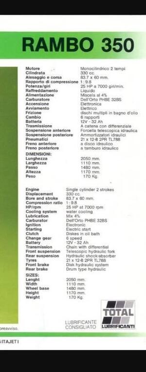 | Cilindrata | 330 c.c. |