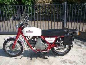 Moto Guzzi “Nuovo Falcone Civile 1972”, Km. 28600. Restaurato: sabbiatura manuale, “Prime” entro 2 ore, verniciatura professionale con vernici originali Lechler, codici Moto Guzzi, filetti rossi verniciati, motore conservato non sabbiato. In ordine di marcia pronta all’uso, nessun difetto, manutenzione annuale, olii, filtri. Ammortizzatori originali rigenerati. Gomme e batteria nuove. Set documenti completo: Libretto circolazione, CDP, Libretto uso e manutenzione originale, tessera FMI. Parabrezza originale anni 70 (attacchi no). Set 3 bauletti GIVI installato, facilmente sostituibile con i due bauletti originali anni 70 in vetroresina. Accessori compresi: quelli presenti nelle foto + borsa da serbatoio magnetica + corona e catena rapporto lungo.