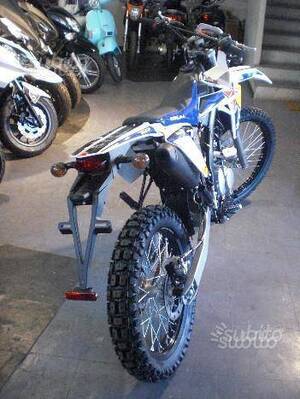 NUOVISSIMO CROSS RIEJU MARATHON 125 AC LIMITED EDITION DISPONIBILE DA SUBITO A 2450 EURO FRANCO CONCESSIONARIO. EDIZIONE LIMITATA CON COLORE PERSONALIZZATO BLU E BIANCO! POTENTE GRAZIE AL MOTORE DA 125 CC 4 TEMPI RAFFREDDATO AD ARIA E INDISTRUTTIBILE GRAZIE AL TELAIO PERIMETRALE A DOPPIA TRAVE IN ACCIAIO AD ALTA RESISTENZA. FRENI A DISCO ANTERIORI E POSTERIORI.. MANUBRIO IN ALLUMINIO.