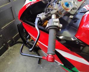 Protezione leva freno / frizione CNC Racing nero / rosso + adattatore interno specifico per semimanubrio CNC Racing.